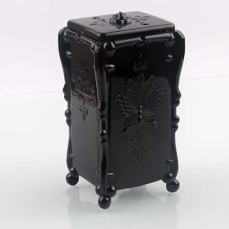Vintage Style Pattern Acrylic Makeup Cotton Pads Puffs Storage Box With Cover (black) Product name: Vintage Rose Flower Cosmetic Cotton Box Material: Plastic Size: 8cm * 7cm * 15cm Color: Black Packaging: color box