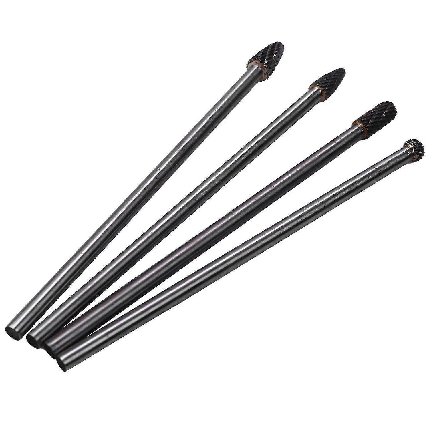 4Pcs Long Reach Burr Double Cut Tungsten Carbide Bit 1/4 Inch 6 Inch Set