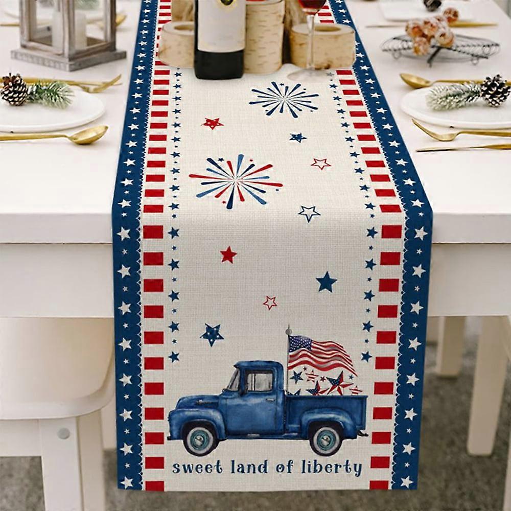 4th of July Table Runner 70" USA Flag Design - Non-Slip Burlap Dinner Runner, Stars & Plaid Pattern - Compatible with Independence Day & Memorial Day