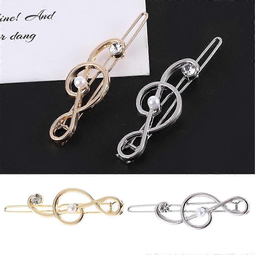 4x Simple Hollow Hairpin Clip Music Note Rhinestone Hair Snap Clamp Ladies Headwear