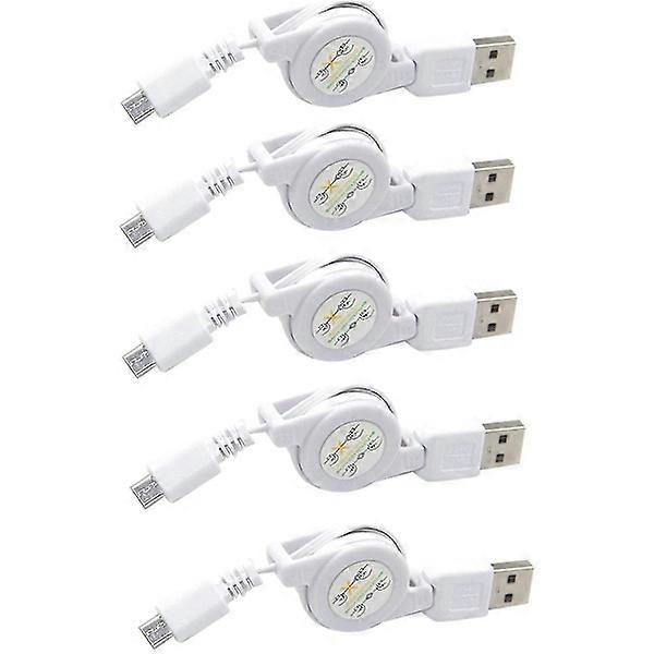 5-pack Micro USB to USB Retractable Sync and Charge Cable