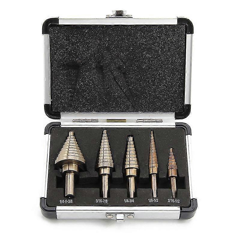 5 Pcs Titanium Hss Step Cone Drill Hole Cutter Bit Set Tool + Case