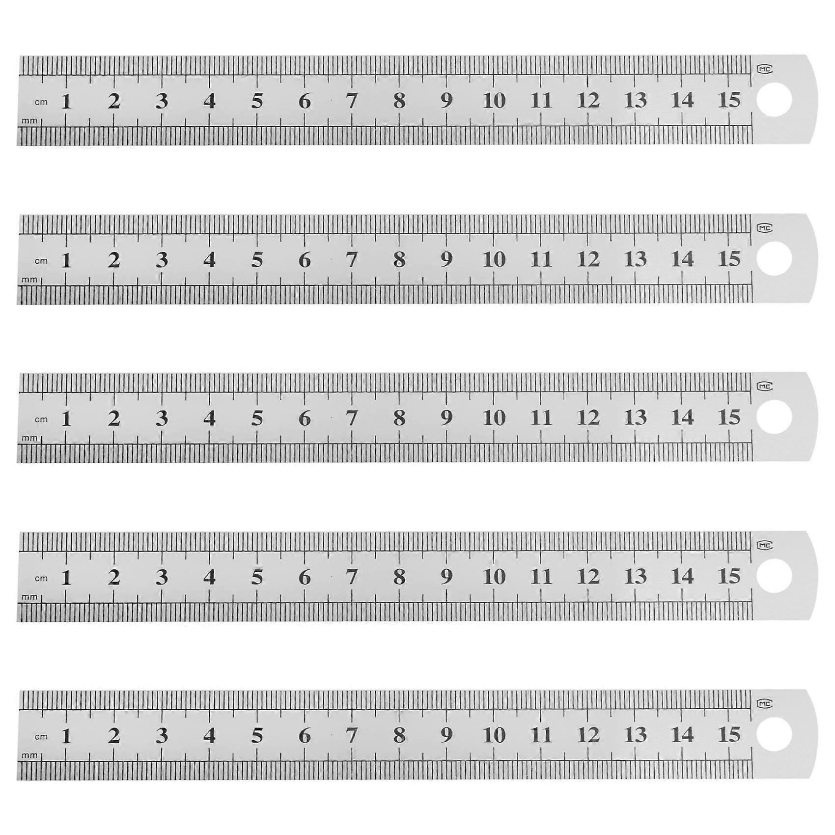 5 Pcs Dual Side Marked 15cm 6 inch Stainless Steel Straight Ruler
