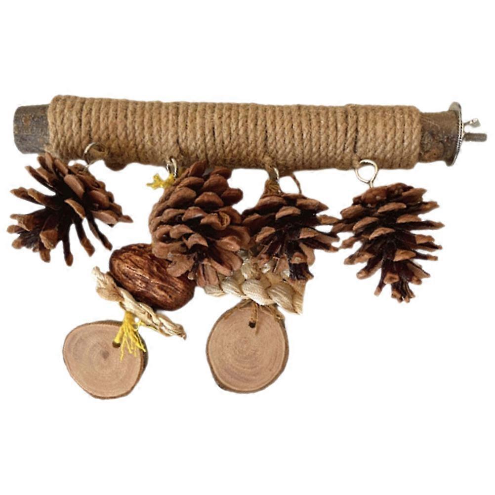 5Pcs Wooden Parrot Cage Perch With Pine Cone For Parakeets Indoor Claw Grinding Bird Entertainment