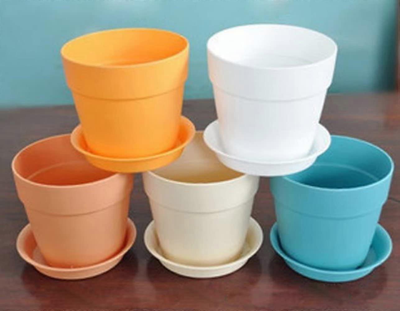 5 Stck Bunte Mini-Harz-Kunststoff-Blumentpfe mit Untertassen, Blumentopf fr den Hausgarten, oberer Durchmesser 9,5 cm, Hhe 9 cm, unterer Durchmesser 6