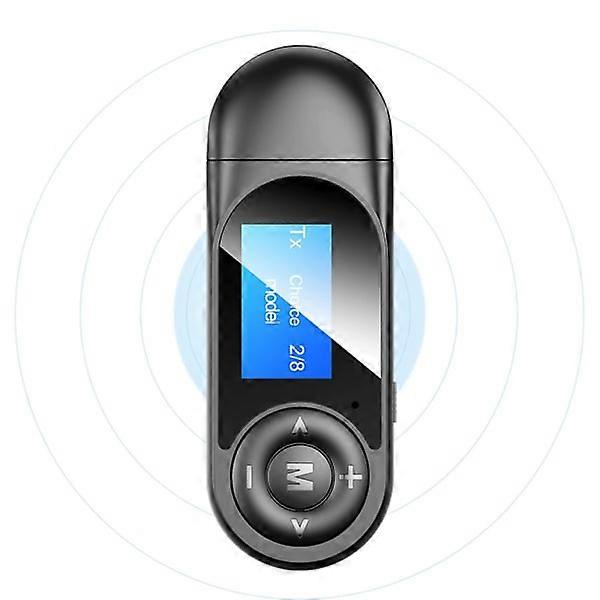 2-in-1 Bluetooth Audio Adapter - This Bluetooth 5.0 adapter can function as both a receiver and a transmitter. Enjoy low-latency audio through your wireless headphones, speakers, or car stereo at home. Low Latency & LCD Screen - Watch TV/movies/videos in perfect sync and listen to music clearly without interference. The LCD screen displays Bluetooth status, making your usage clearer and more convenient. Bluetooth V5.0 - Featuring Bluetooth 5.0 and upgraded CSR technology, experience clear audio quality in your car or at home. Listen to songs and make calls effortlessly. Enjoy beautiful sound from over 10 meters away without any cable connections. USB Powered Adapter - No need to charge! The USB port ensures constant streaming and a reliable power supply. Enjoy music anytime, anywhere. Small and Durable - Compact, lightweight, space-saving, and easy to carry for use anytime, anywhere. The Bluetooth adapter has a memory function and can automatically reconnect after being disconnected.