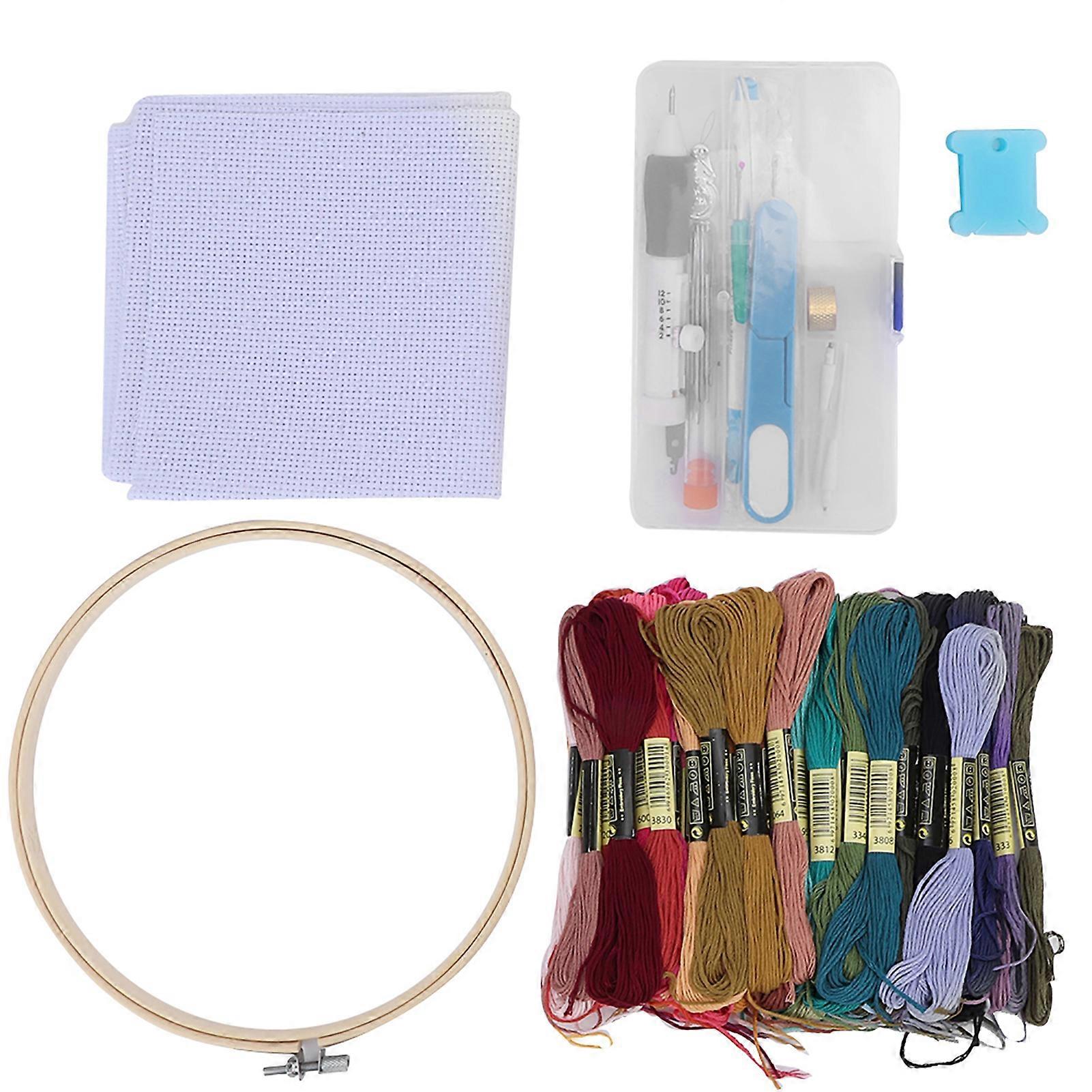 50 Colors Thread Skeins Embroidery Needle Set Needle Felting DIY Punch with 1 Bamboo Cycle