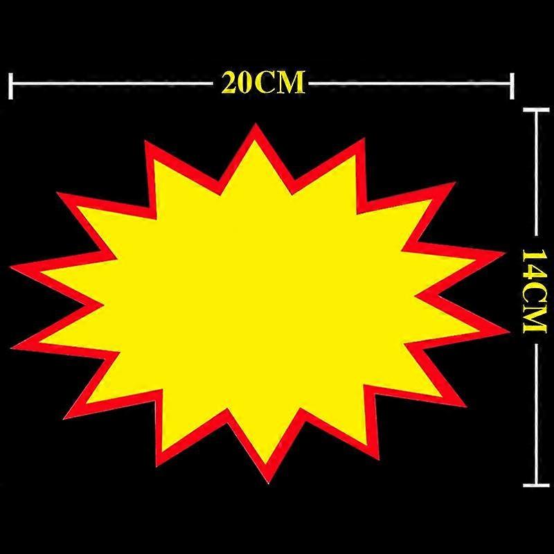 Package Includes: 50 Sale Signs Color: Yellow; Material: Cardstock size: 11x6cm/4.3x2.3 inches, 20x14cm/7.8x5.5 inches, 25x16cm/9.8x6.2 inches An eye-catching and inexpensive way to display prices and specials in your retail store, ideal for supermarkets, clothing stores, bookstores, dessert shops, pharmacies and more