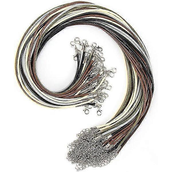 50 Pieces Leather Cord, Waxed Cotton Cord with Extension Chain and Lobster Clasp 2 mm Multicolored Braided