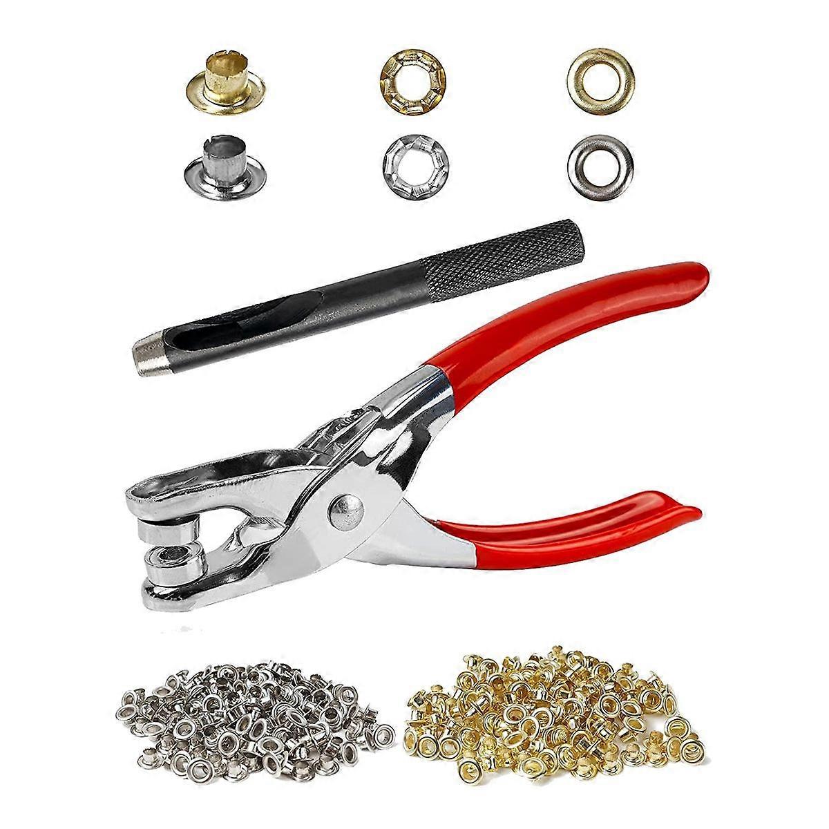 500Pc 1/4 Inch Grommet Tool Kit, Leather Hole Punch Pliers, Grommets Kit with 500 Metal Gold and Si