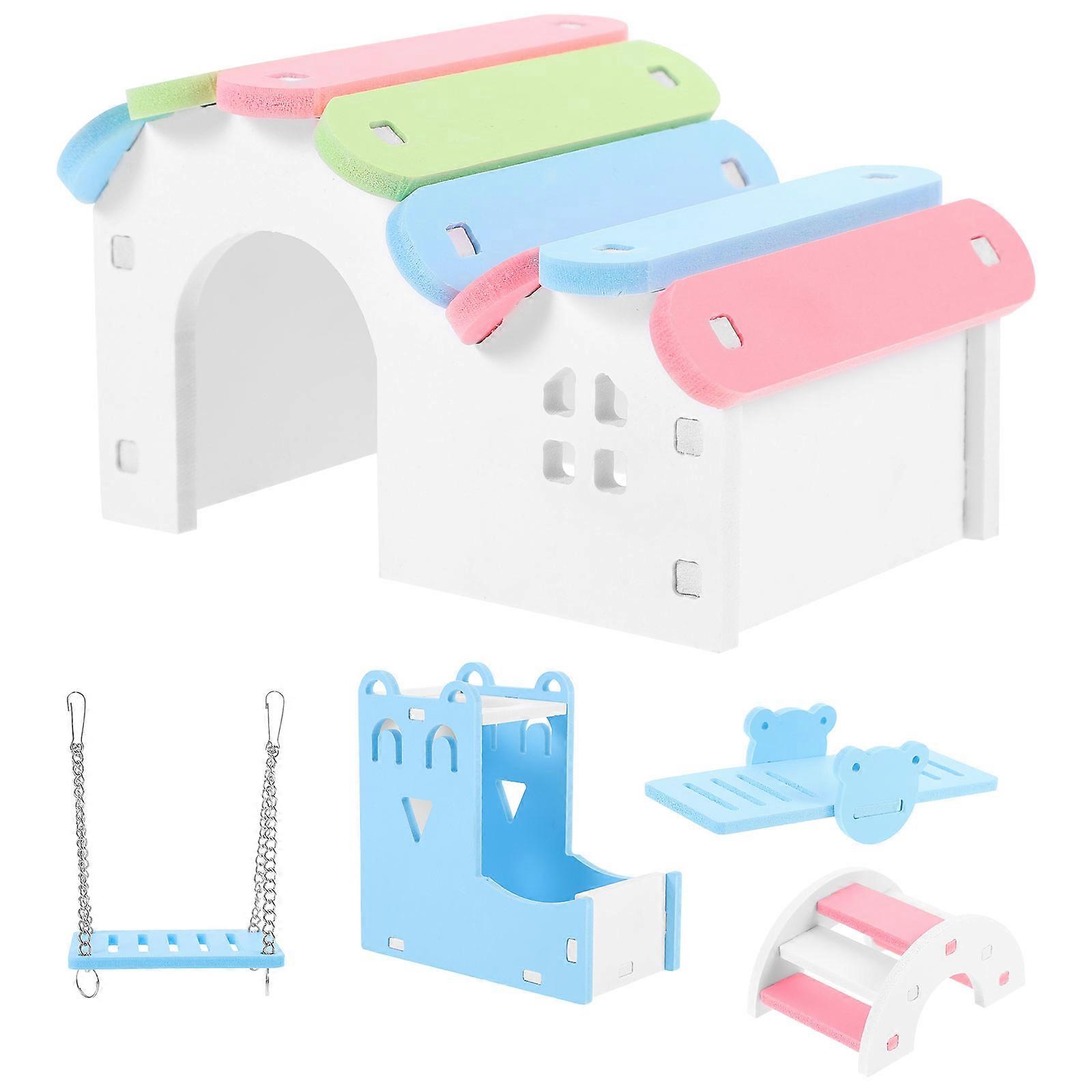 5pcs Assorted Color PVC Hamster Toy Set with Rainbow House and Seesaw for Small Pets Play and Rest