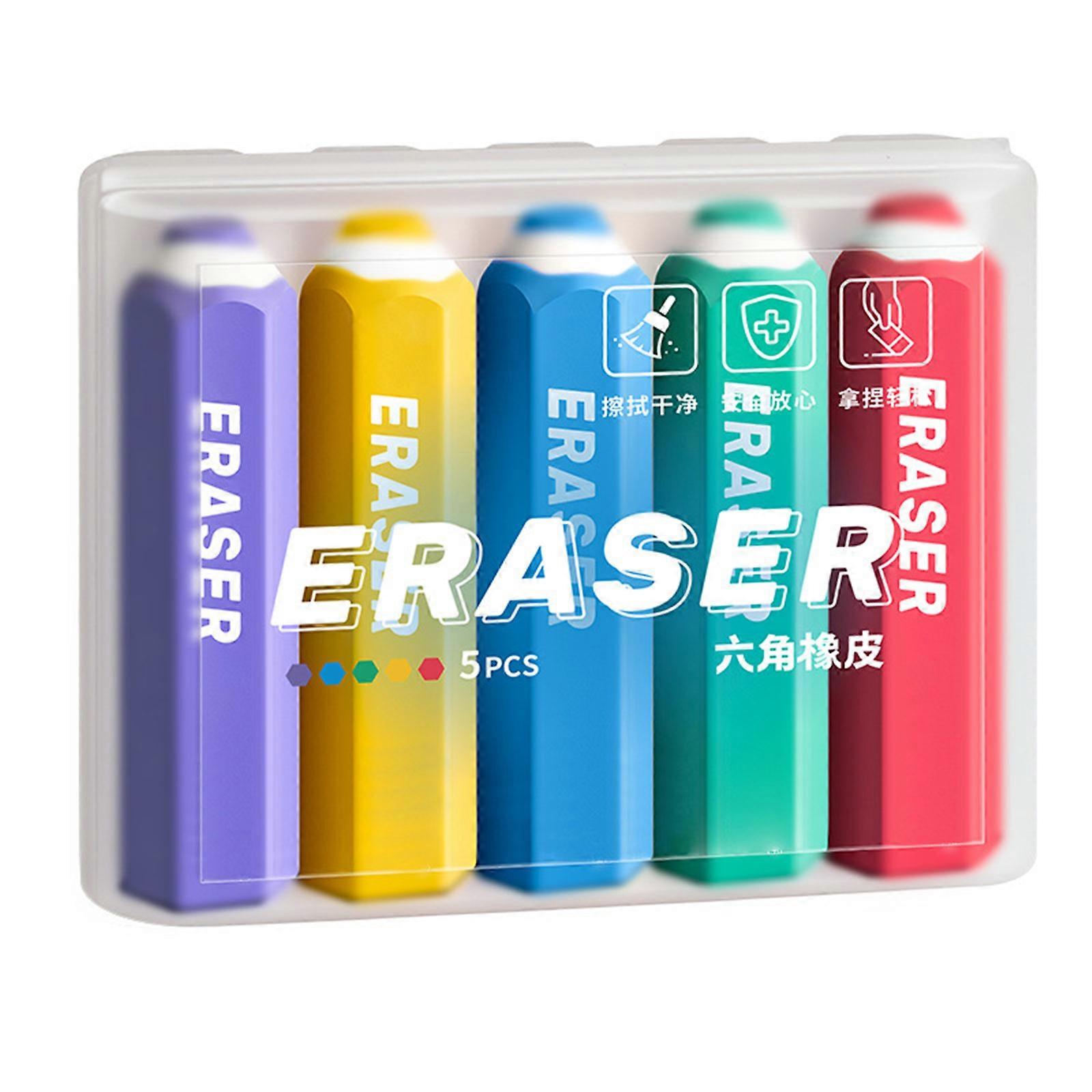 5PCS Novelty Colorful Pencil Shape Erasers Easy Erasing Hexagonal Grip Erasers for Kid Student Sketching Drawing Writing Multicolor