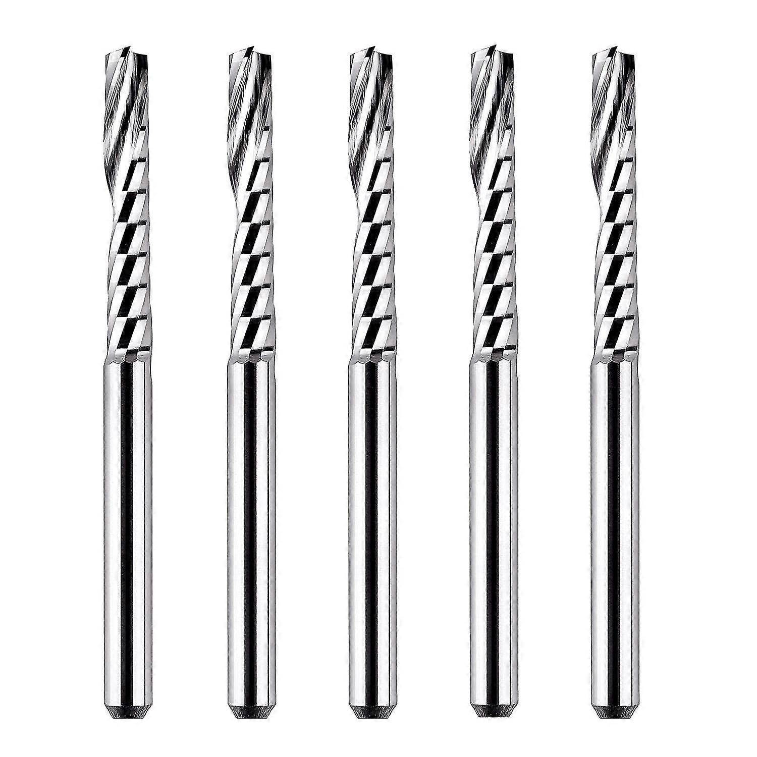 5pcs O Flute Single Flute End Mill Set With 1/8 Inch 2/3 Inch Cutting Length, Solid Carbide Spiral