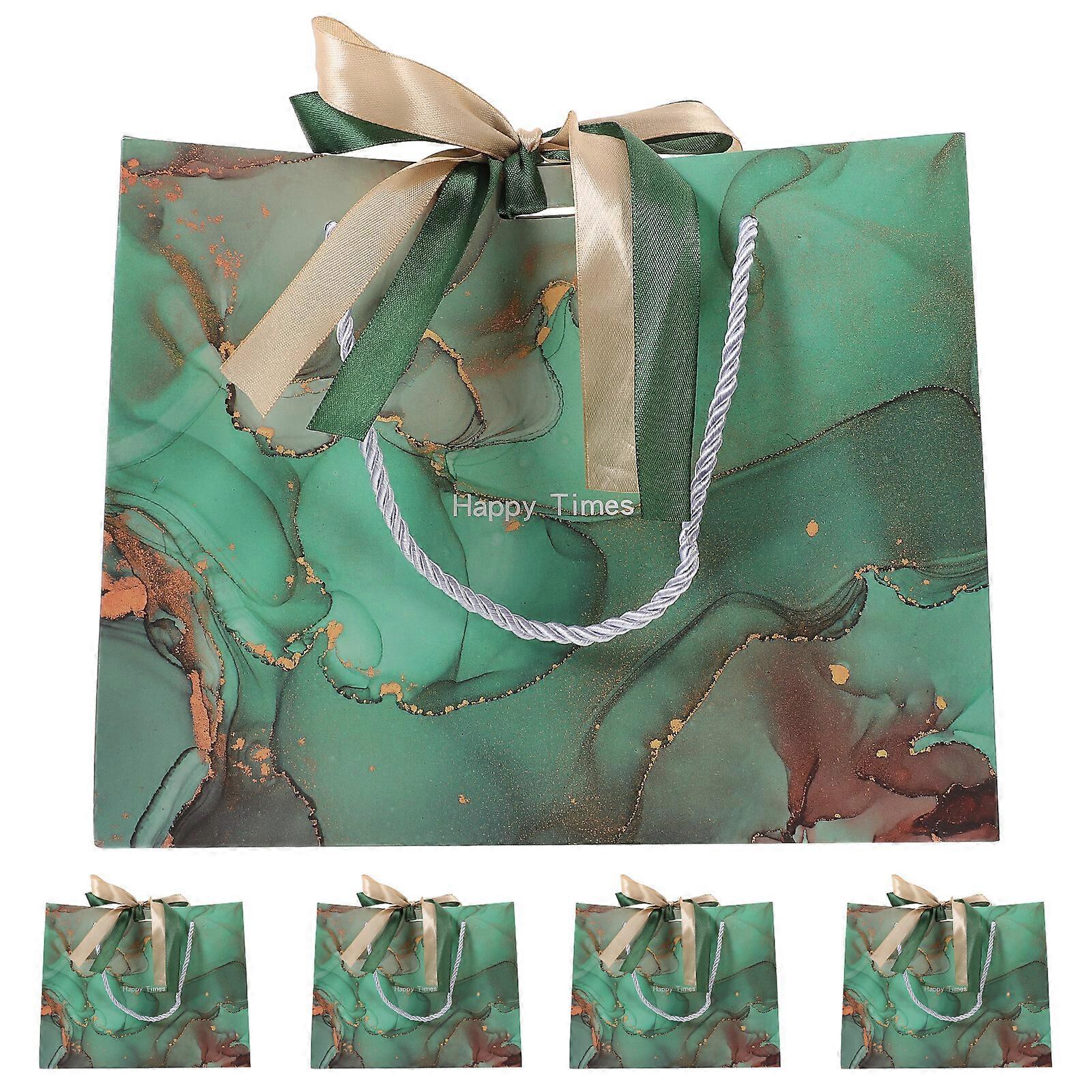 5Pcs Gift Bags with Handle Portable Paper Gift Bag Marble Pattern Present Bags with Bow Ribbon