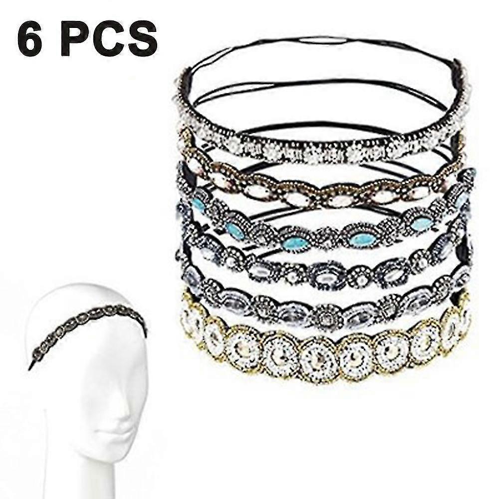 6 pcs rhinestone elastic headbands, beaded bands hair accessories