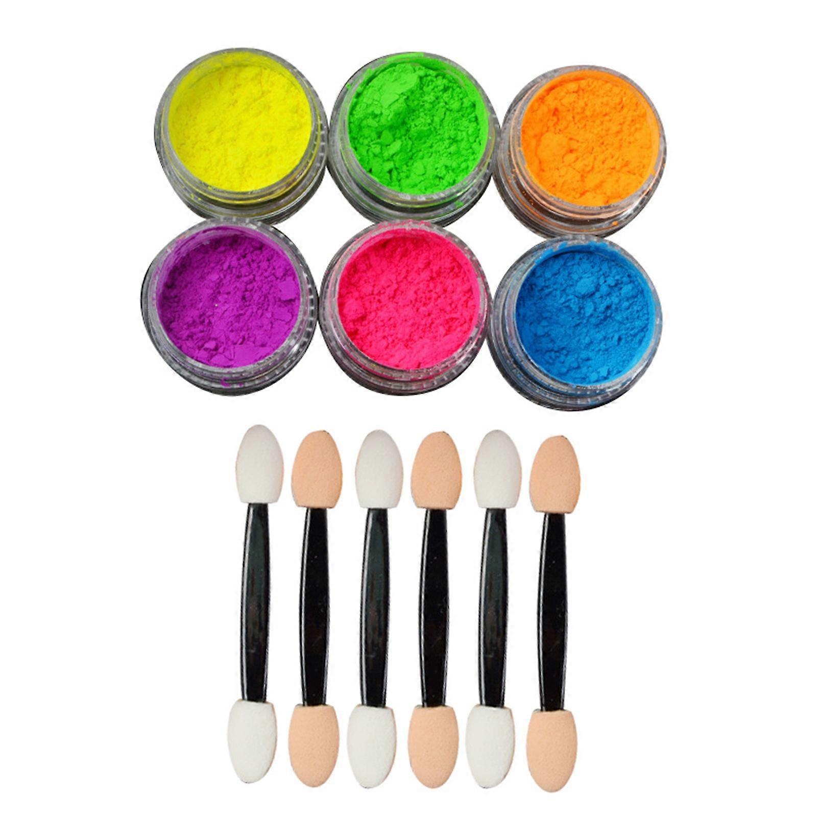 6 Color Neon Nail Glitter Pearl Powder Cans Equipped With Cotton Swabs PUW11136