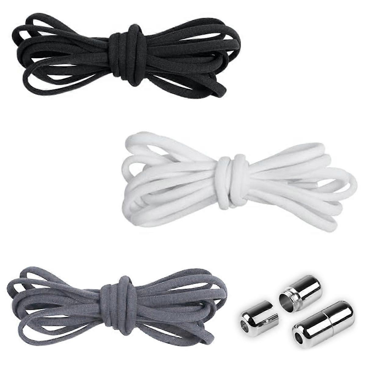 Includes 6 pairs of tie free shoelaces, paired with 12 capsule shaped locks, each shoelace measuring 105cm in length. These shoelaces come in three colors, including black, white, and dark blue, with two pairs of each color. You can use a pair of shoelaces of the same color, or mix and match according to your preferences.Material: Our shoelaces are made of nylon and latex, which are sturdy and durable, and are not easily broken during use. Moreover, these shoelaces have excellent elasticity and can perfectly adapt to various situations.Easy to use: These untied shoelaces are very convenient, you just need to put on the shoelaces and tighten the screw lock. Wearing/putting on, putting on shoes is as simple as ever. And the installation steps are not complicated, it only takes a little time to complete the installation.Time saving: Compared to traditional shoelaces, lace free shoelaces can help you put on shoes faster. Tie it once, and you will never tie your shoelaces again. Tie your shoelaces and they will instantly turn into slippers. Capsule shaped locks are very reliable, so you don't have to worry about your shoelaces frequently loosening during any activity and tying them again, saving a lot of time.Wide application range: Laceless shoelaces are suitable for most types of shoes, including sports shoes, casual shoes, high top shoes, boots, children's shoes, etc. They are very suitable for children, adults, and the elderly, and are very suitable for running, walking, hiking, cycling, and so on.