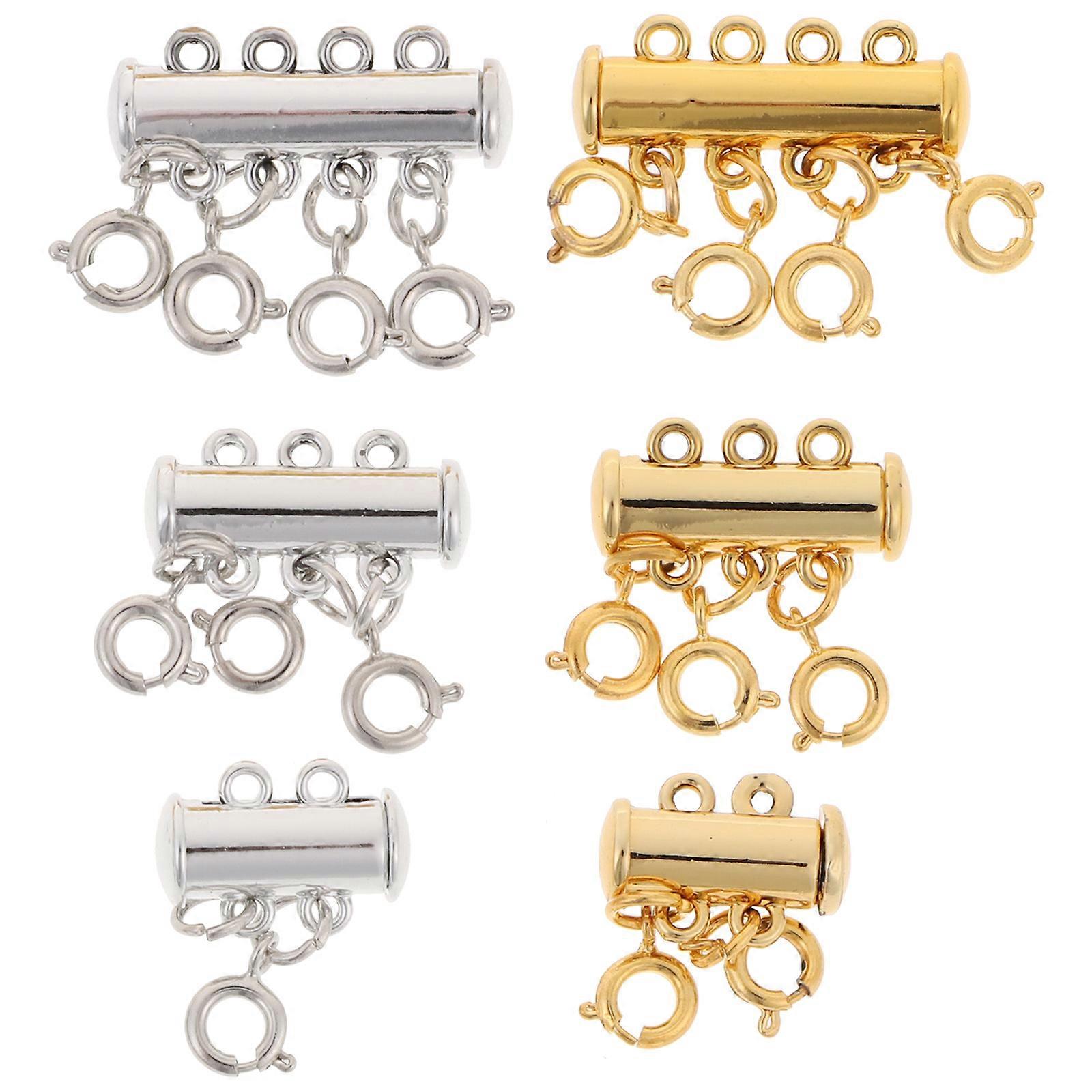 6PCS Multi Row Necklace Clasps, Strong Holding DIY Jewelry Buckles in Silver and Gold for Bracelet Accessories