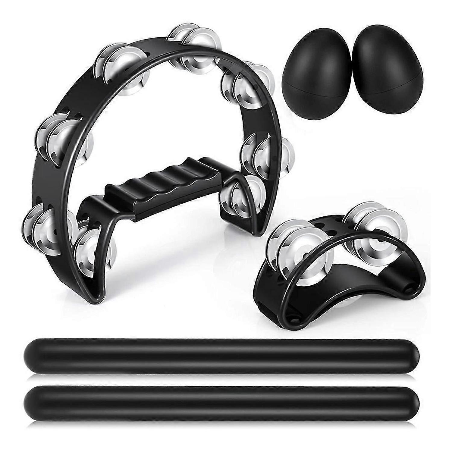 6 Pcs Tambourines, Hand Held Half Moon Tambourine with Rhythm Sticks Egg Shakers Musical Percussion