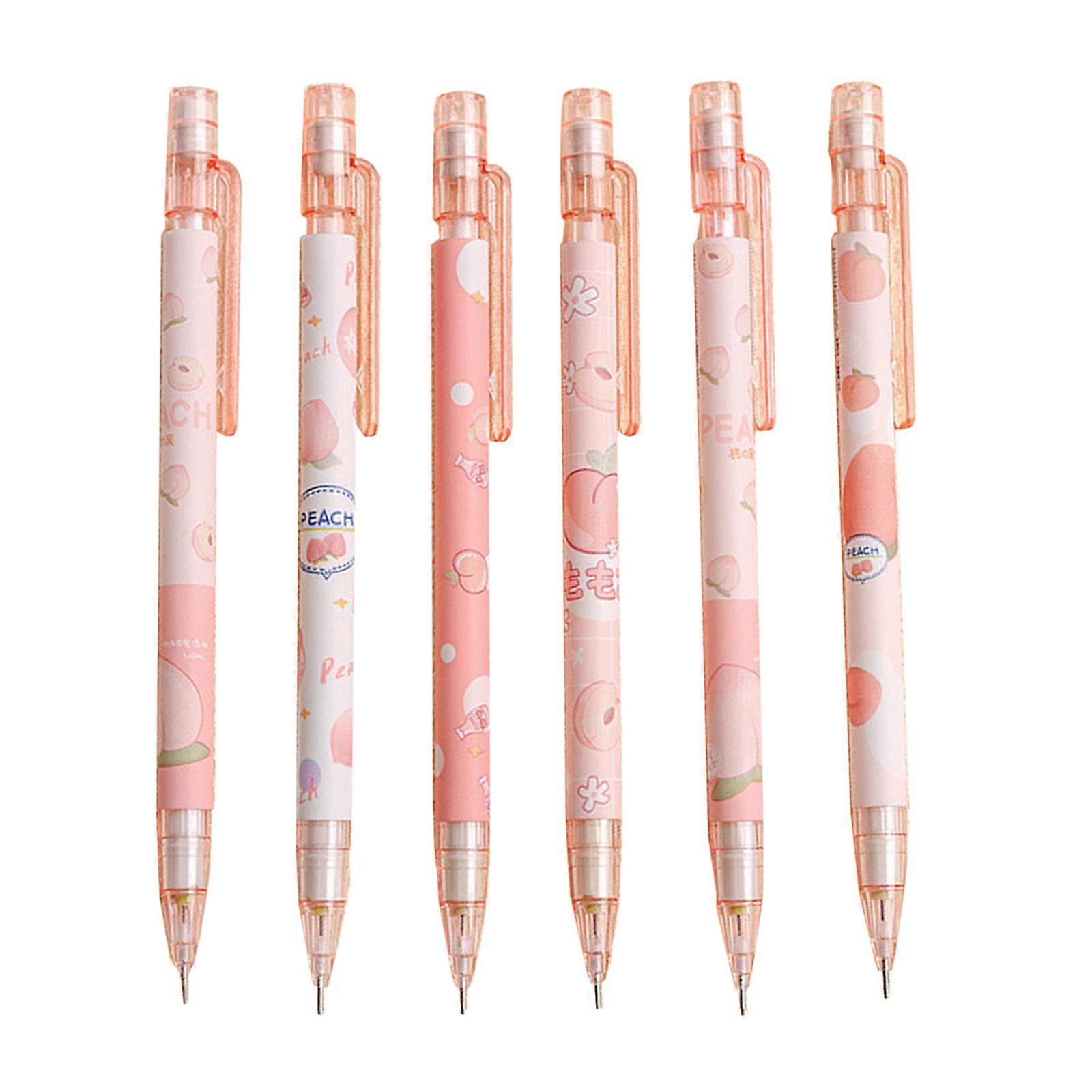 6Pcs/Set Mechanical Pencils with Eraser 0.5mm Fruit Automatic Mechanical Pencils School Office Supplies for Students