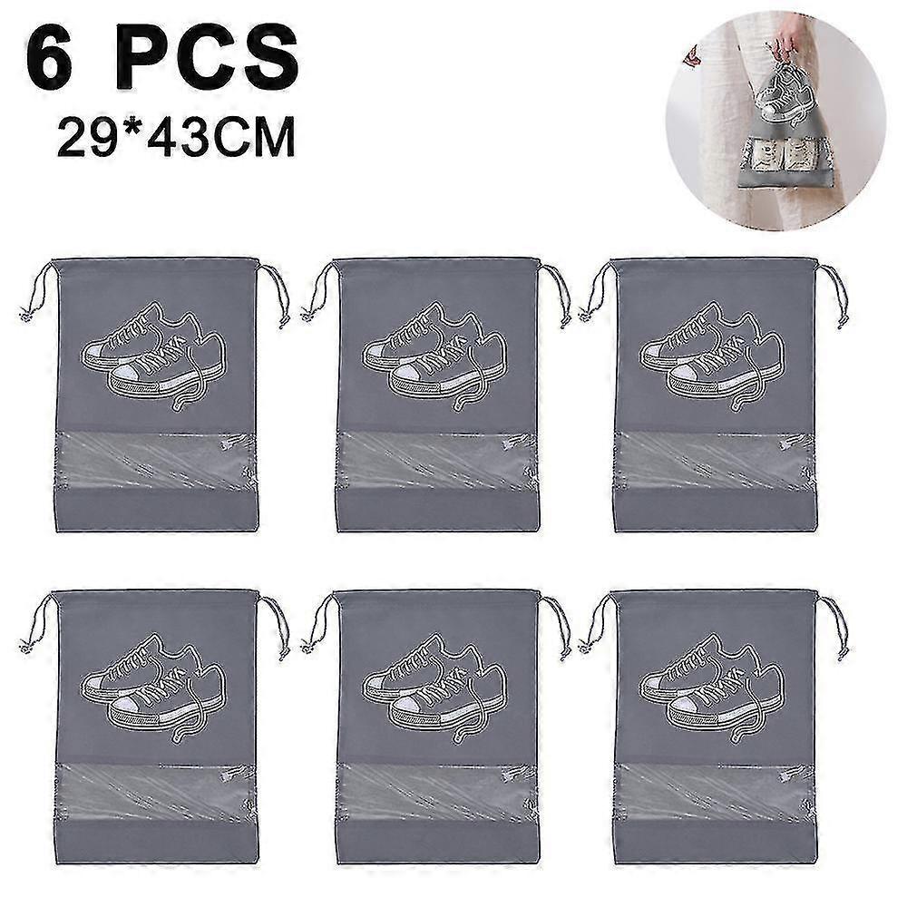6 Pcs Non-woven Fabric Dustproof Shoe Bags With Drawstring For Travel Waterproof