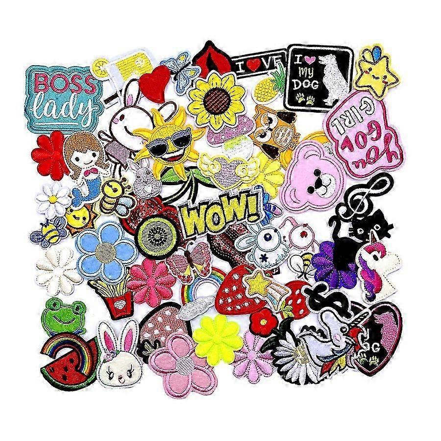 60Pcs Random Assorted Iron on Patches, Cute Sewing Applique for Jackets, Hats, Backpacks, Jeans, DIY Accessories, Style 2