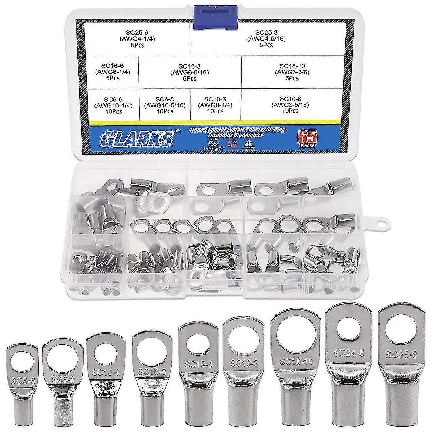 65 Assorted Tinned Copper Battery Cable Lugs with SC Tubular Grommets with Spy Hole Assortment Kit 2025