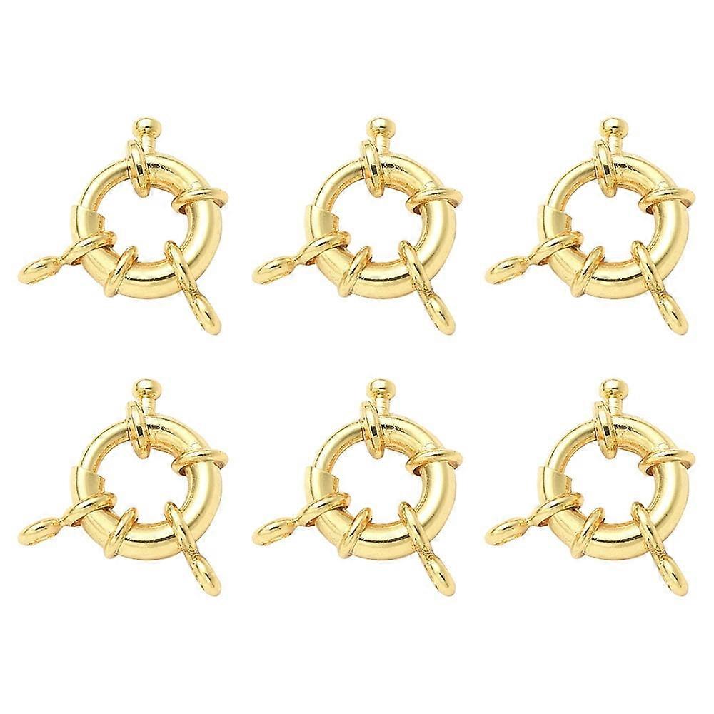 6pc Rack Plating Brass Spring Ring Clasps Real 18K Gold Plated 13x5mm Hole: 2mm