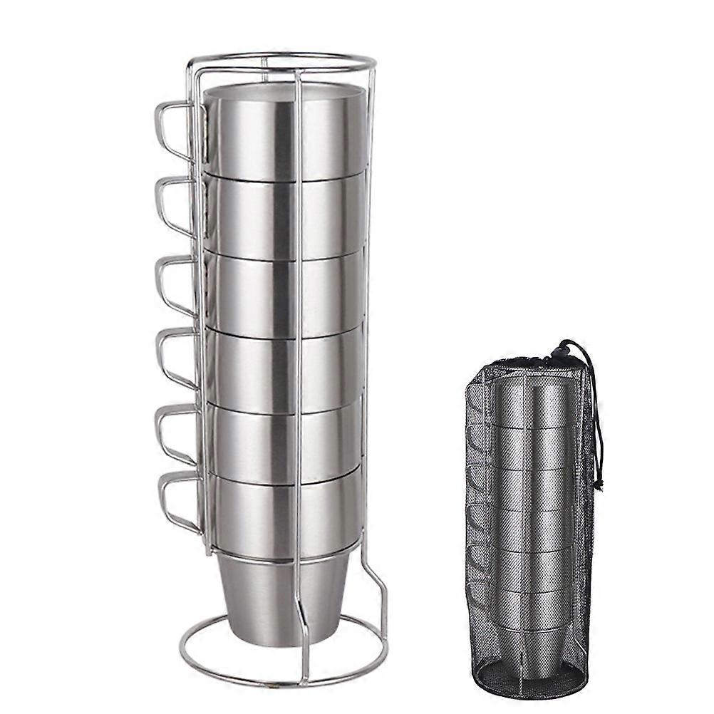 6Pcs Stackable Coffee Mugs Set with Rack Stacking 304 Stainless Steel Double Insulation Cups for Coffee Milk Tea Outdoor Camping Picnic