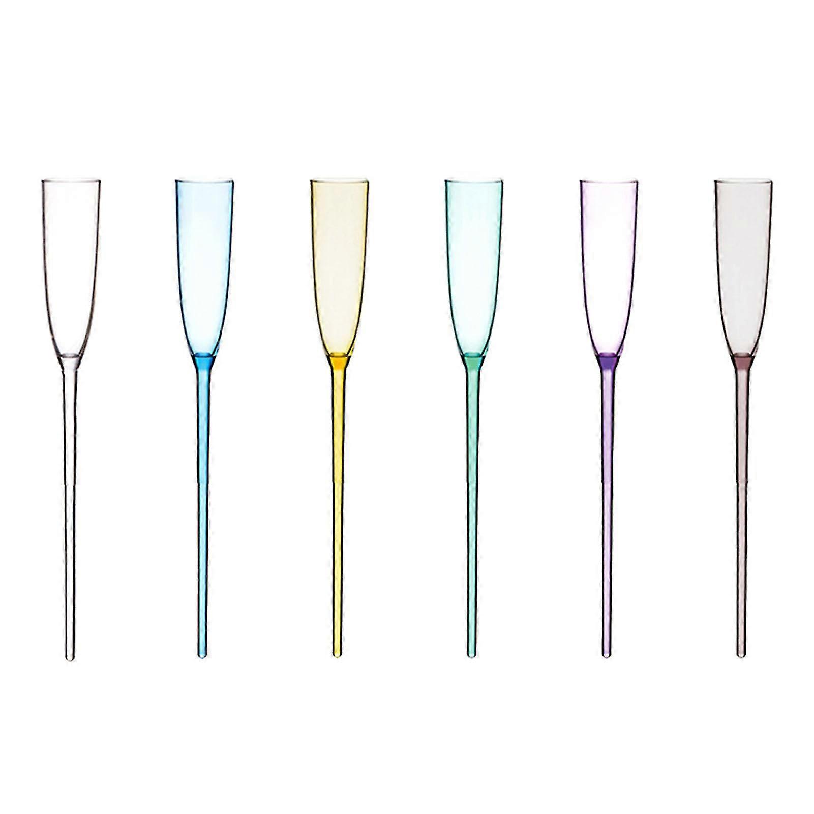 6PCS Champagne Flutes with Vase Holder Vintage Colorful Goblet Hand Blown for Home Bar Party