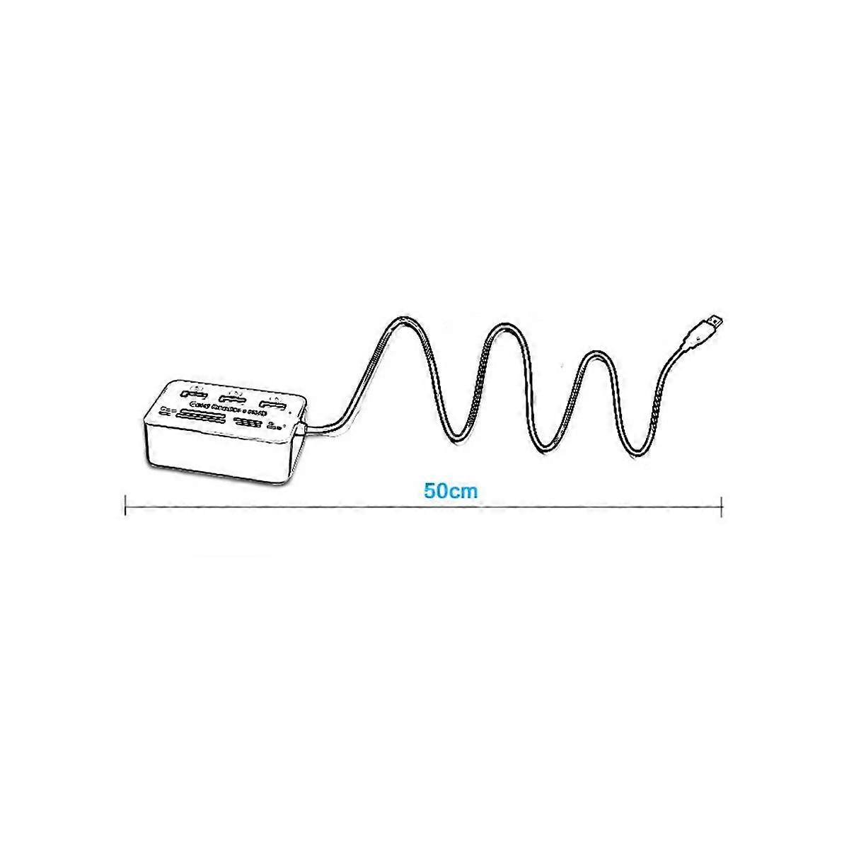 7 in 1 Portable Multi Function 3 Port USB HUB 2.0 Splitter Combo Card Reader Support TF SD M2 SDHC