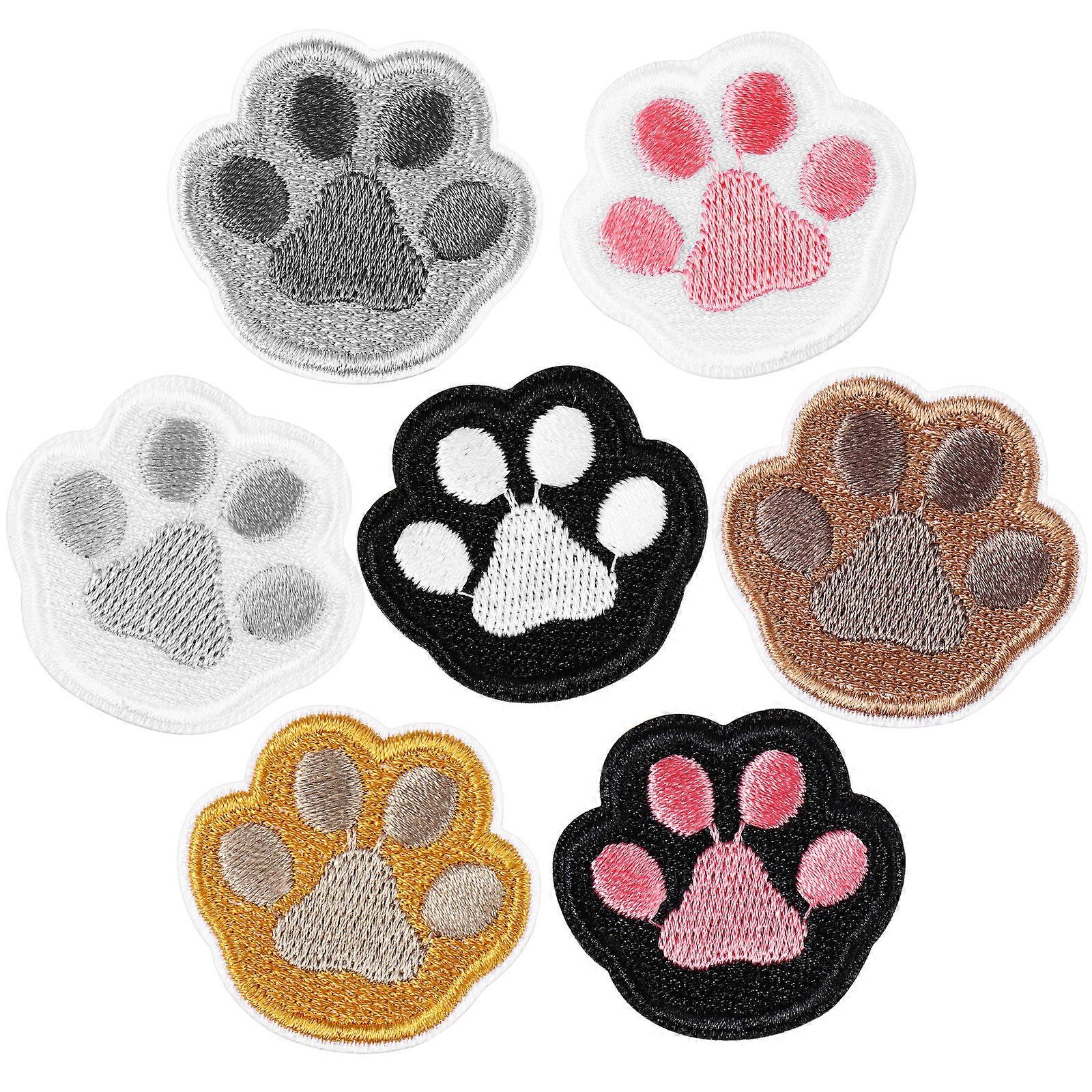 7 Pcs Paw Pattern Iron-on Patches Paw Self-adhesive Embroidered Appliques for DIY Clothes Jackets Hats Bags