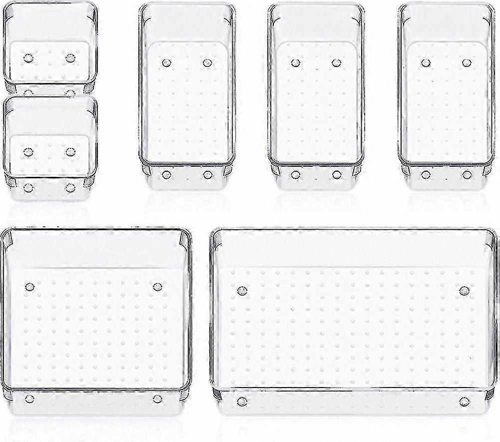 7-Piece Desk Drawer Organizer Set with Non-Slip Silicone Pads, Clear Plastic Trays in 4 Sizes for Home or Office Use