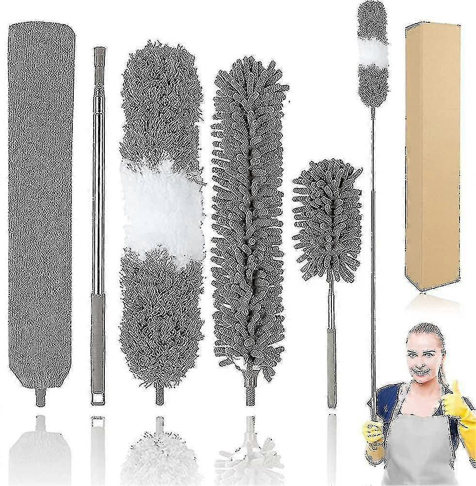 Everything you need from Cleaning Ceiling to Corner: : Our Cleaning Dusters Set includes: 1 Bendable Microfiber Duster Head, 1 Replaceable Chenille Duster Head, 1 Telescopic Chenille Duster, 1 Crevice Gap Brush and 1 Extendable Pole in one Kraft paper case. This Microfiber Duster Kit can help you clean the dust on the surface or gaps of objects easily from ceiling to the dead corner better. Very suitable for cleaning furniture, ceilings, ceiling fans, blinds, cobwebs, cars, corners. . Microfiber and Chenille Material, Excellent dust removing effect: : Microfiber and Chenille has strong electrostatic adsorption effect, can effectively absorb and remove the dust on the surface. And because its soft enough, it wont damage the surface. You can easily clean your room or office. Washable Duster, support hand wash, Please put the brush in a laundry bag before machine wash, avoid damage when cleaning. . Enough Long Telescopic Pole, 30 to 100 inch: : The Stainless Steel telescopic POLE, does not easily break and rust. Support fully extends up to 100inch/254cm long, easily reach anywhere you need clean, retracts to 30nch/7 6.2cm short, no need to risk climbing a ladder to clean up the dust in the high area, it can help you easily clean your ceiling, ceiling fans dust and cobwebs. And the Soft plastic anti-slippery Handle can help you save effort to do clean, let you enjoy cleaning. . Bendable and Detachable Duster Brush Head: : Our Duster is different from ordinary dusters, the brush head part is Bendable, can be bent into different angles to reach the hard-to-reach dead corners to clean the dust. The Gap Brush and Microfiber Duster are your good helper. Easy to disassembled and use many times, very durable. 3 PCS cleaning dust head can be replaced for different cleaning needs. And the Telescopic Chenille Duster can help you better clean keyboards, cabinet corners and so on. . Multifunctional Cleaning Tool: : This Cleaning Duster is not only suitable for cleaning the dust in cars, computers, air conditioners, televisions and other household appliances, but also suitable for sofas, tables, ceilings, shutters, ceiling fans, circuit boards, bookcases, bottom of sofa, bottom of bed, bottom of cabinet, wall gap, wall surface, bathroom, stove, etc. .