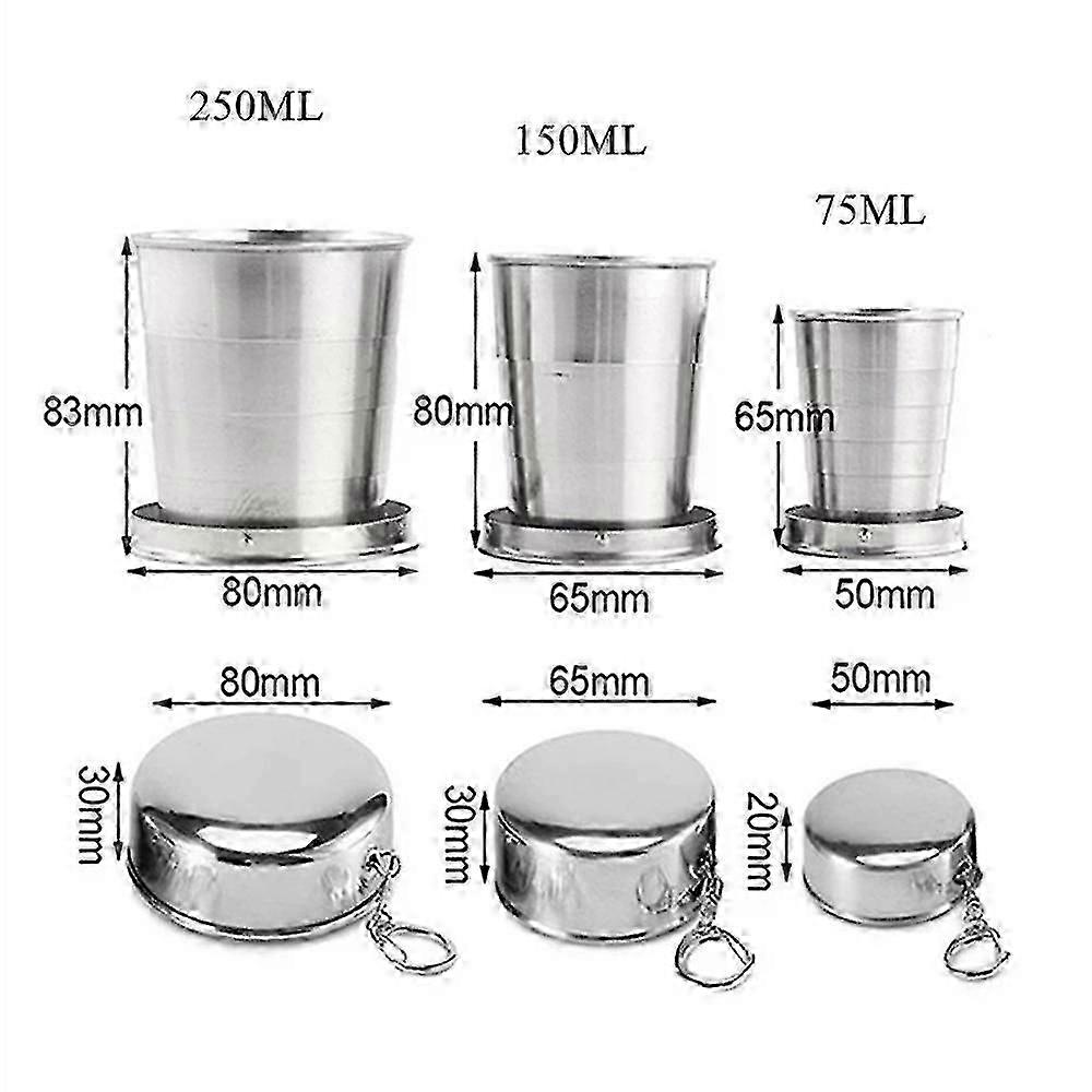 70-250ml Telescopic Stainless Steel Camping Cup Portable Folding Water Cup with Key Ring
