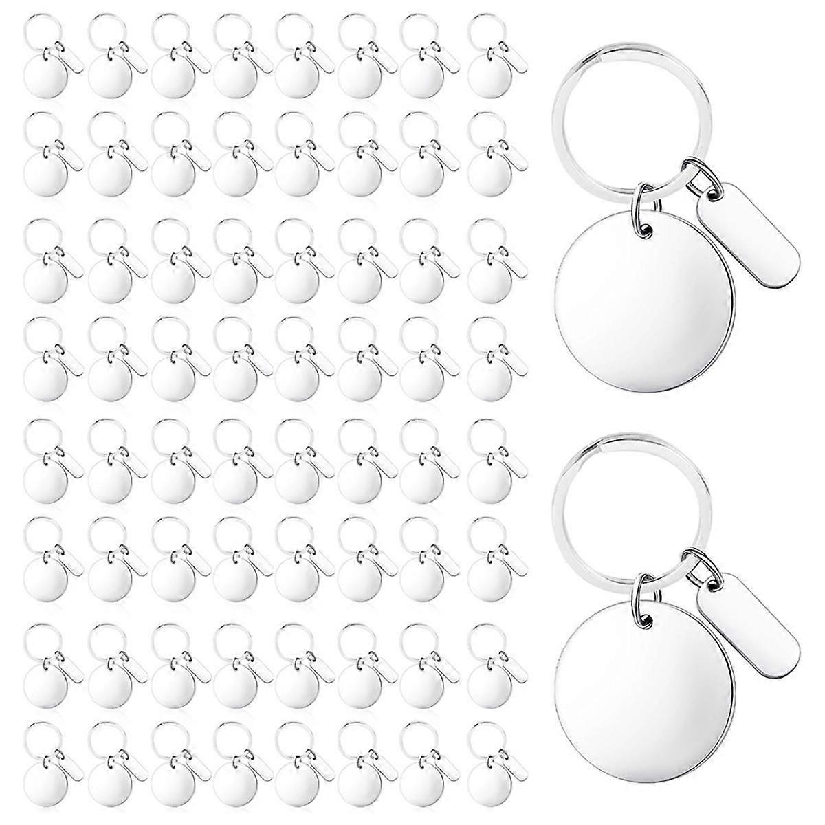 72pcs Engravable Keychain Blanks Stainless Steel Blank Key Ring Stamping Tags Round Engravable Key Ring Tags with Hole