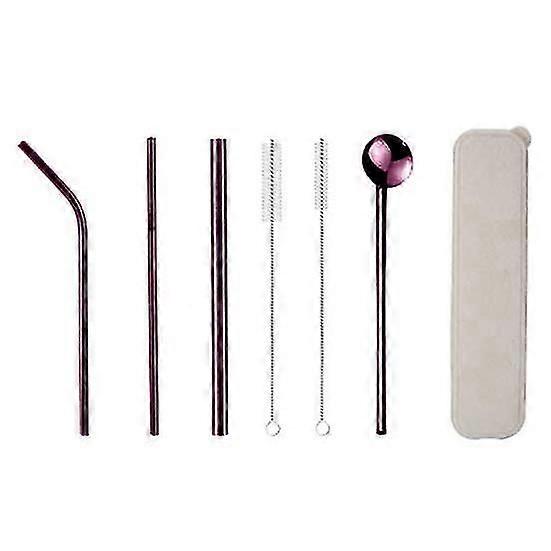 7Pcs Reusable Stainless Steel Straws Spoon Drinking Flatware with Cleaning Brush