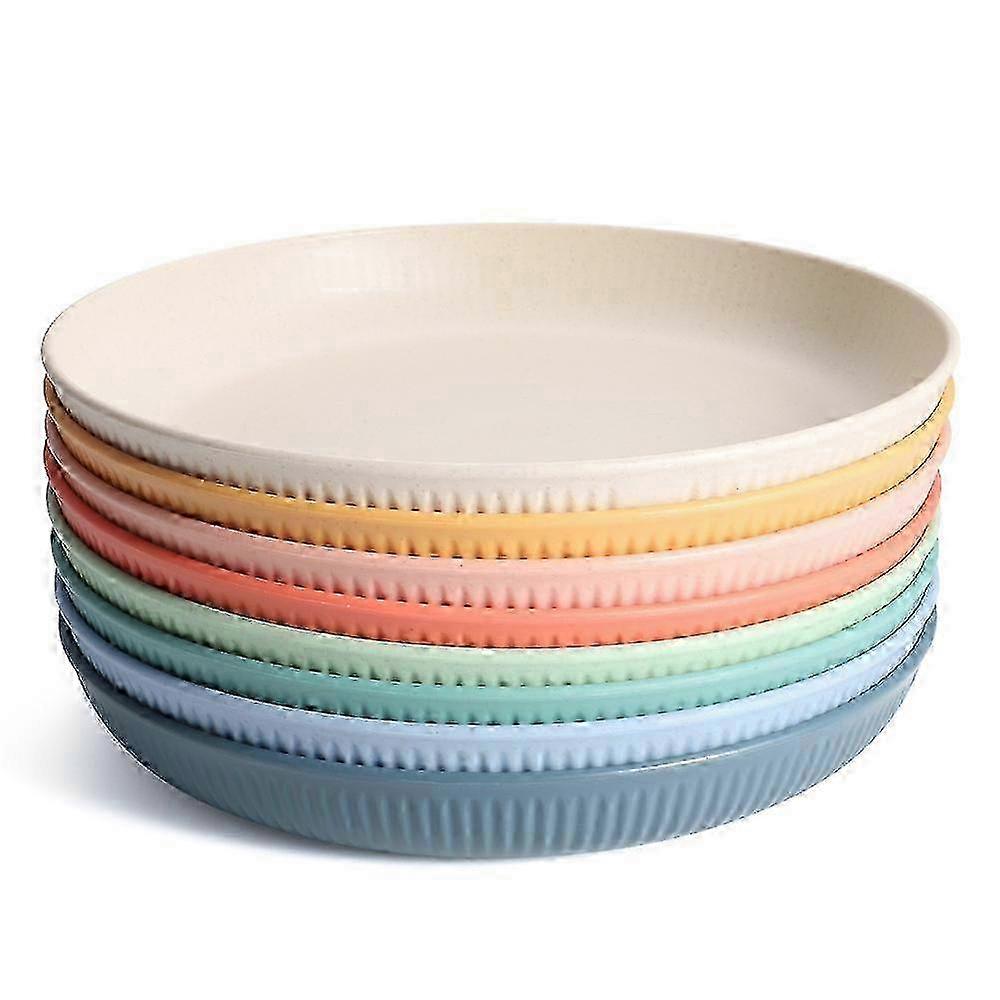 1. [Unbreakable structure]:Made of wheat straw fiber, BPA and food- PP material. it will no break if Plates sets droop or if they are accidentally hit, unlike crystal or porcelain tableware and glasses. Super sturdy and durable. Light to hold and to use. In addition, with its smooth round edges and modern style, these plates sets facilitate efficient utilization of space on our tables. 2. [Dishwasher and Microwave Safe]:These utensils are very lightweight and heat resistant, You can throw this microwave dinnerware in the microwave or dishwasher without worrying that it will melt like plastic or shatter in the dishwasher. 3. [Package Includes]:This unbreakable dinnerware set includes 8PCS ( 8 x 9 Inches wheat straw Plates- 9 x 1.4 inch weight:103g) Each set comes in 8 beautiful colors:Pink ,Beige,Yellow,Orange,Light blue,Dark blue,Light green,Dark green Give you a perfect set of matching designs and colors. 4. [Natural Materialand Gift]:Made of natural straw fiber and other food-grade materials,non-toxic,odorless,,environmental-friendly, and sanitary. it can directly with food, sustainable to environment for your home. It may not be a luxurious gift, but definitely a meaningful one! Awesome gift idea for Christmas, housewarming, birthday etc. Note: Due to the light and screen setting difference, the item's color may be slightly different from the pictures. Please allow slight dimension difference due to different manual measurement.