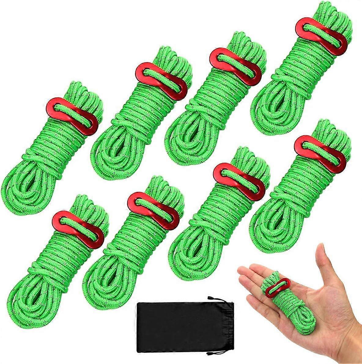 8 Pack Reflective Tent Guy Ropes, Light-Weight Tent Guide Lines Cord with Aluminum Tensioners Adjust