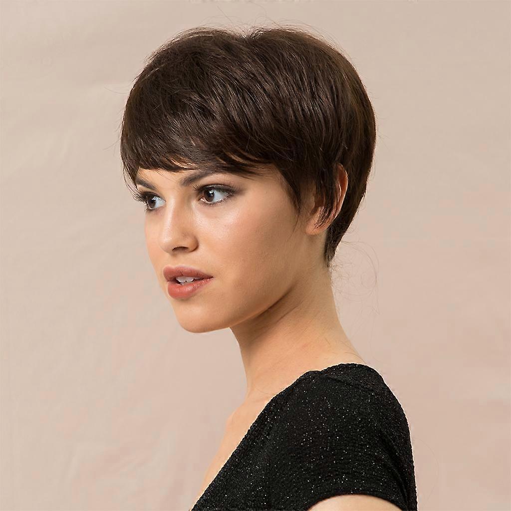 8 Inch Short Women Human Hair Resisting Safe Full Wigs With Bang