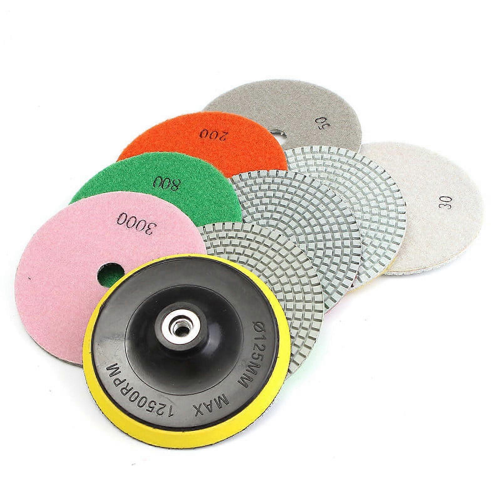 Name:Wet Dry Polishing Pads Material:Diamond Color:Picture Color Size:5 inch/125mm Usage: Home DIY Quantity:9pcs Package Include: 1 X 30Girt Diamond Pad 1 X 50Girt Diamond Pad 1 X 100Girt Diamond Pad 1 X 200Girt Diamond Pad 1 X 400Girt Diamond Pad 1 X 800Girt Diamond Pad 1 X 1500Girt Diamond Pad 1 X 3000Girt Diamond Pad 1 X Backer Pad Only the above package content, other products are not included. Note: Light and different displays may cause the color of the item in the picture a little different from the real thing. The measurement allowed error is +/- 1-3cm. Name:Wet Dry Polishing Pads Material:Diamond Color:Picture Color Size:5 inch/125mm Usage: Home DIY