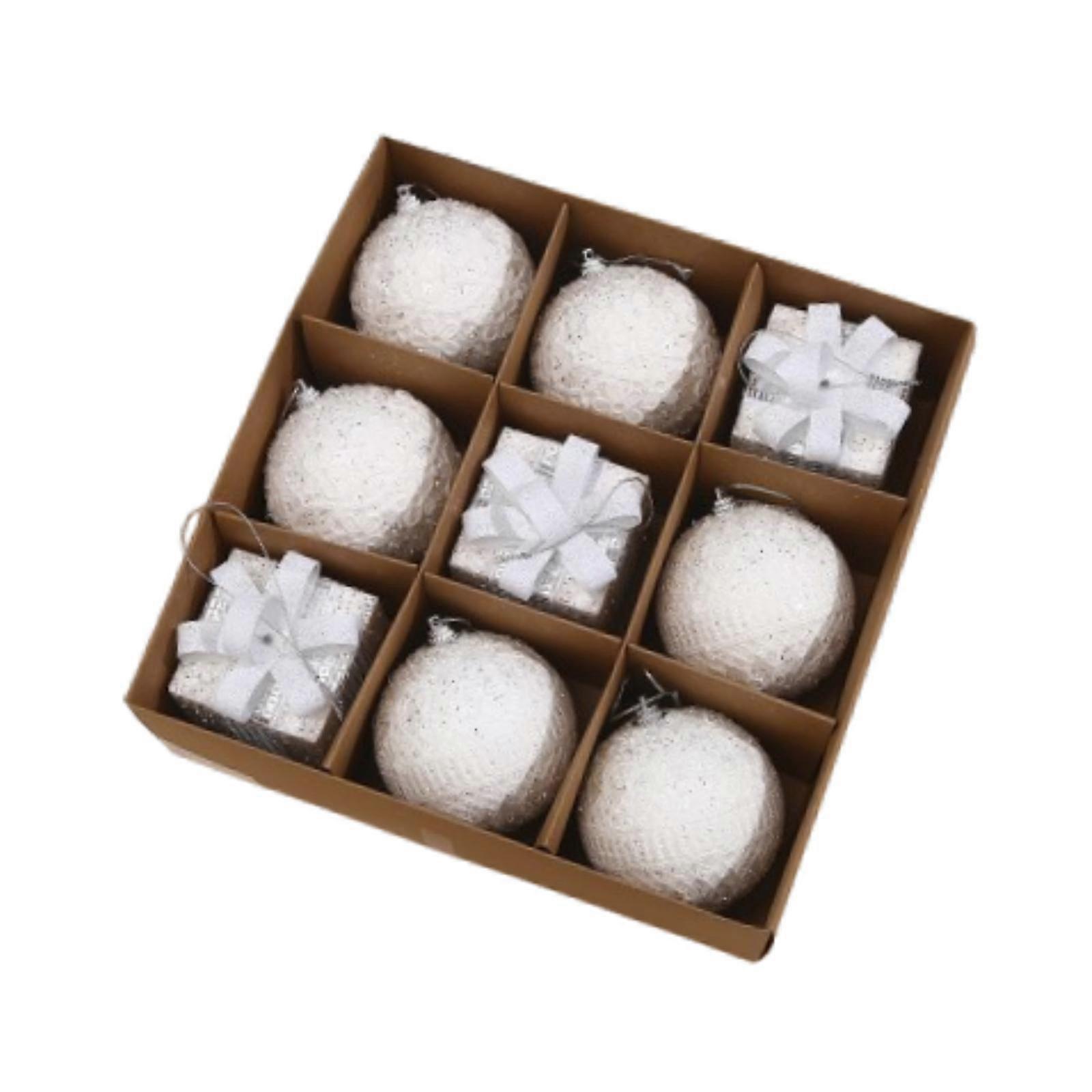 9 Pieces 3inch Christmas Ball Baubles Hanging Pendants Decorative for Window White