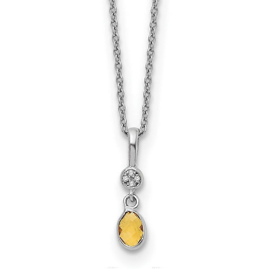 925 Sterling Silver Rhodium Plated White Ice .02ct. Diamond and Citrine With 2inch Extension Necklace 18 Inch 1.25mm Wid
