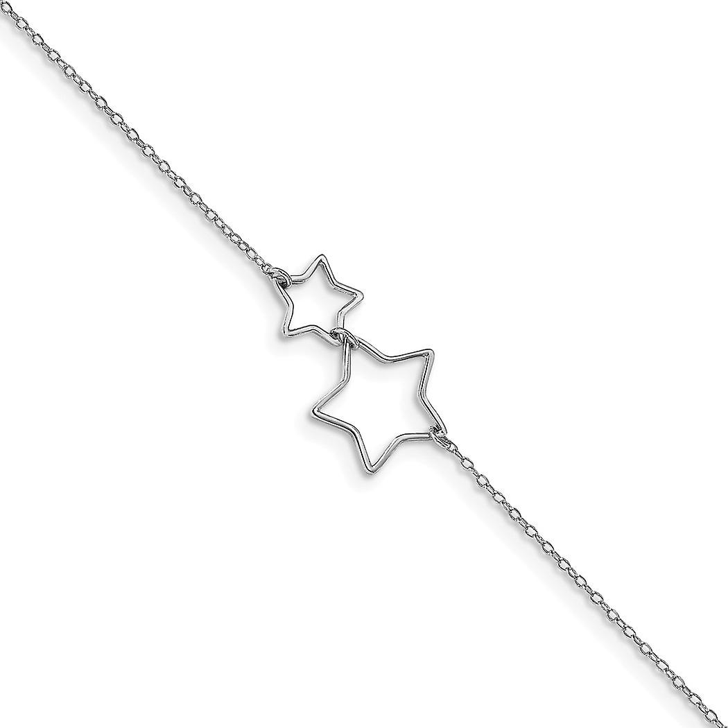 925 Sterling Silver Rhodium Plated Cut out Stars With 2inch Ext. Anklet 9 Inch 13.8mm Wide-Anklet for Women