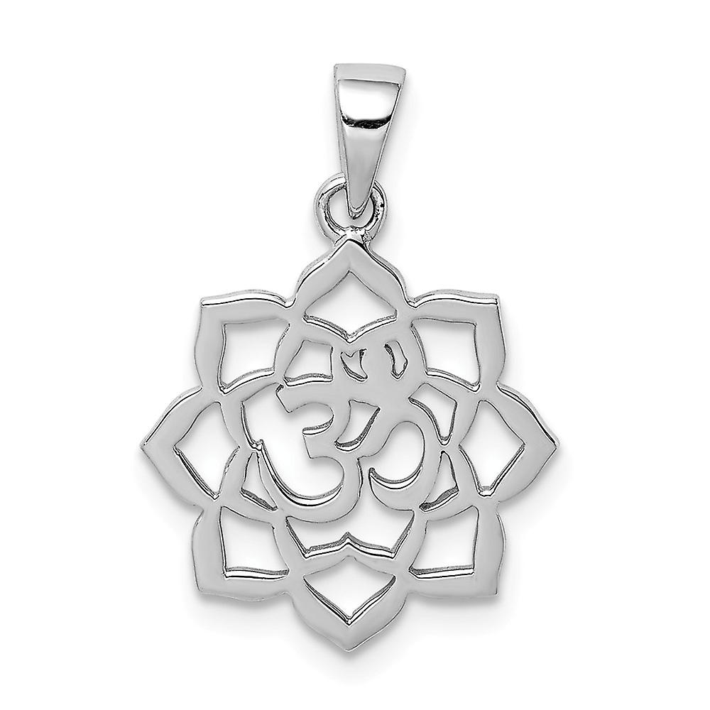 925 Sterling Silver Rhodium Plated Lotus With Om Center Pendant Necklace 21x15mm Wide-Pendant for Women