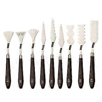 9PCS Professional Aço Inoxidável Paleta Scraper Set Espátula Paleta Faca Pintura Misturando Scraper Set