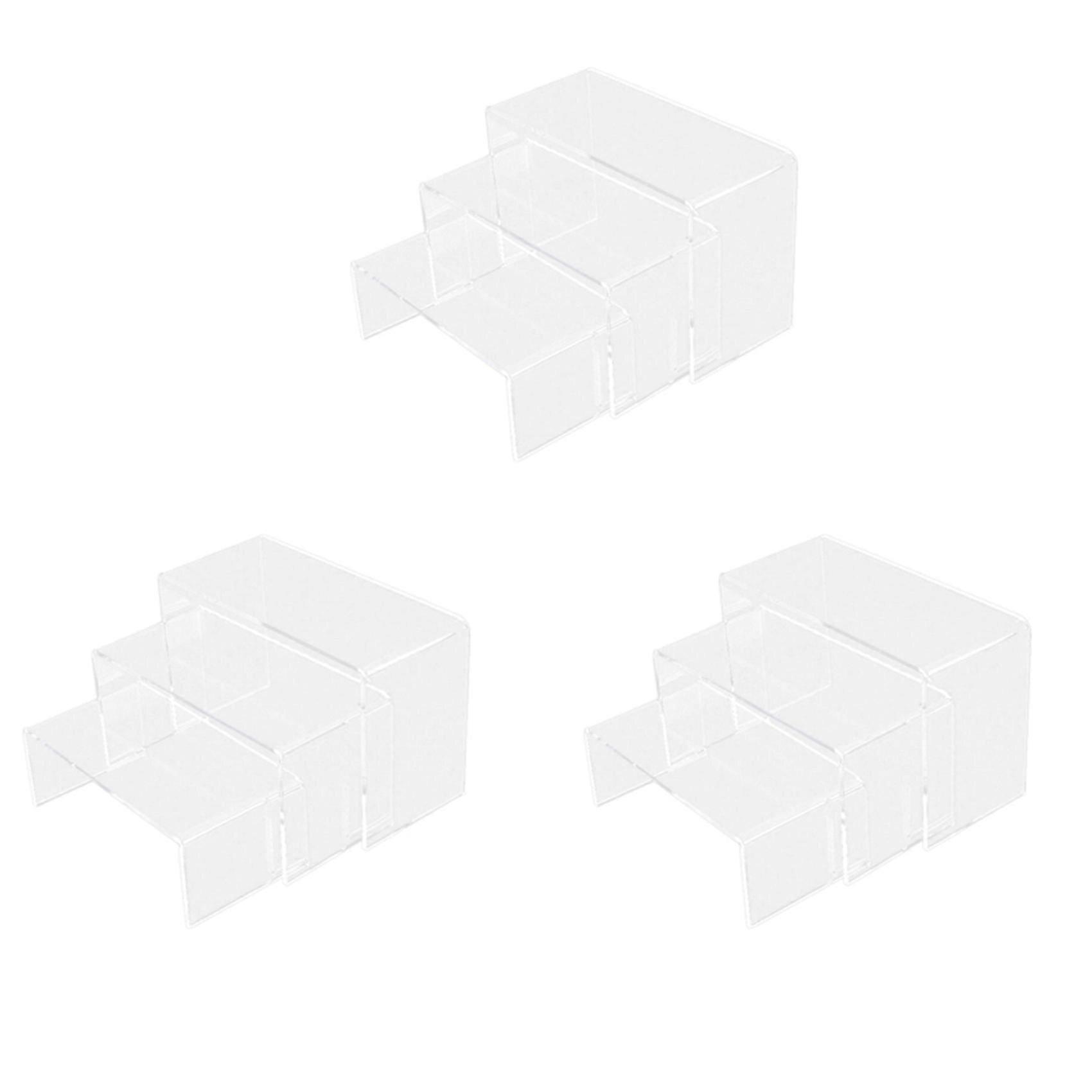 9x 3 Tier Acrylic Clear Display Stand Riser Showcase Jewellery Cosmetics Makeup Collection Display