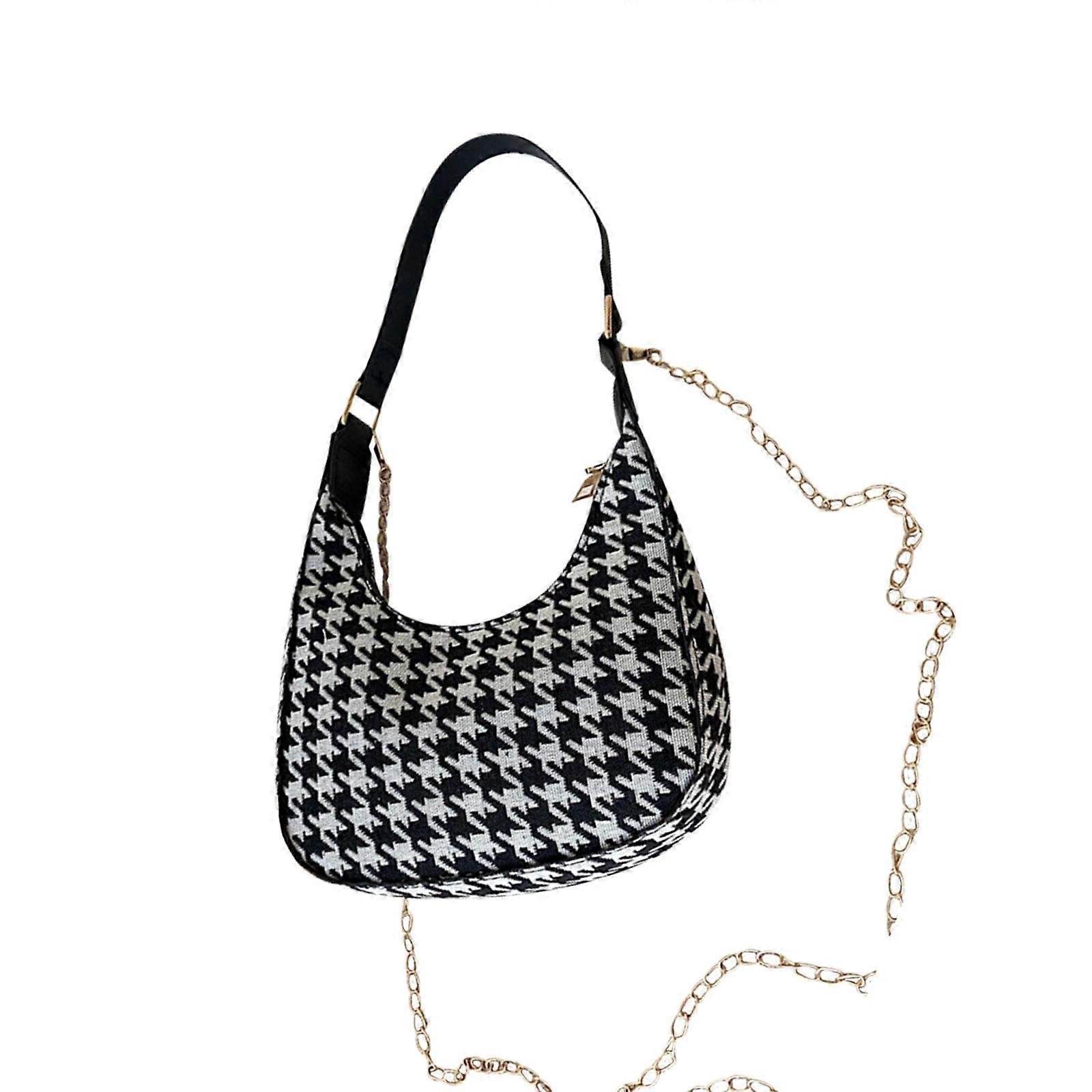 The Korean Version Of The Thousand Bird Red Contrast Color Retro Chessboard Stick Underarm Crescent Bag Portable Shoulder Bag For Women