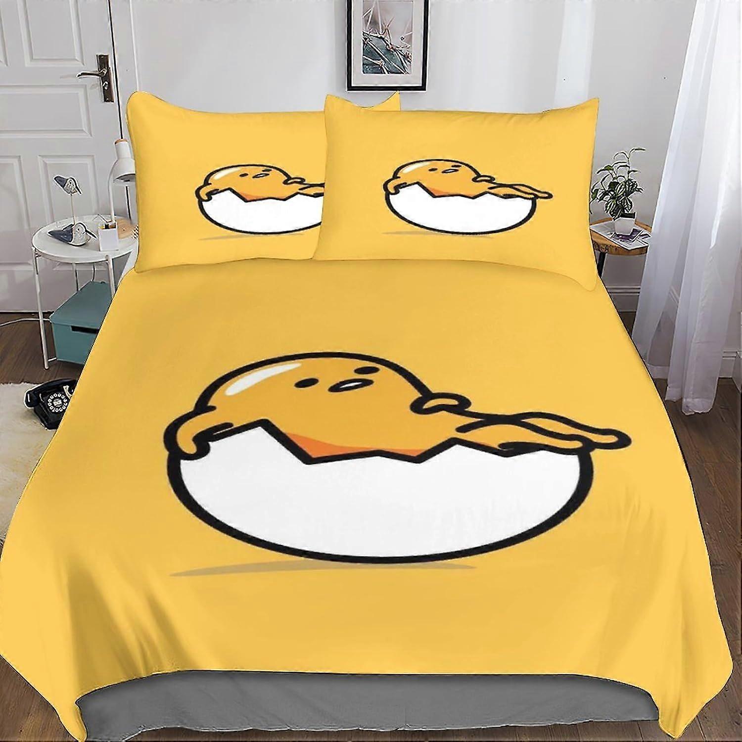 A179 Gudetama 3D Bedding Cartoon Animation Print Duvet Cover Set Soft Microfiber Duvet Cover with Pillowcases with Zipper Closure 3 Pieces,for Kids Te