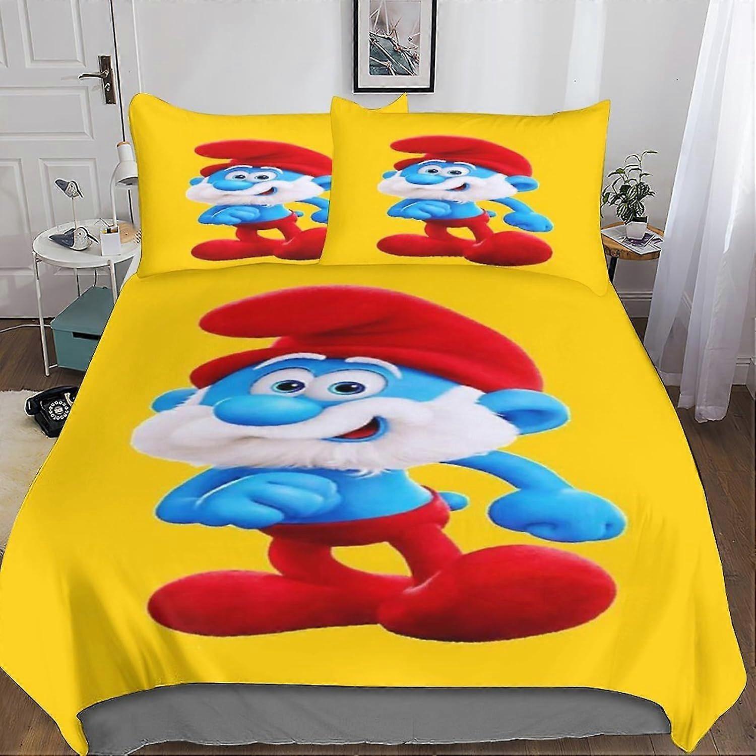 A230 The Smurfs 3D Print Duvet Cover Bedding,3 Pieces Set Piece Cartoon Quilt Cover Piece Matching Pillowcase with Zipper Closure Soft Microfiber Doub